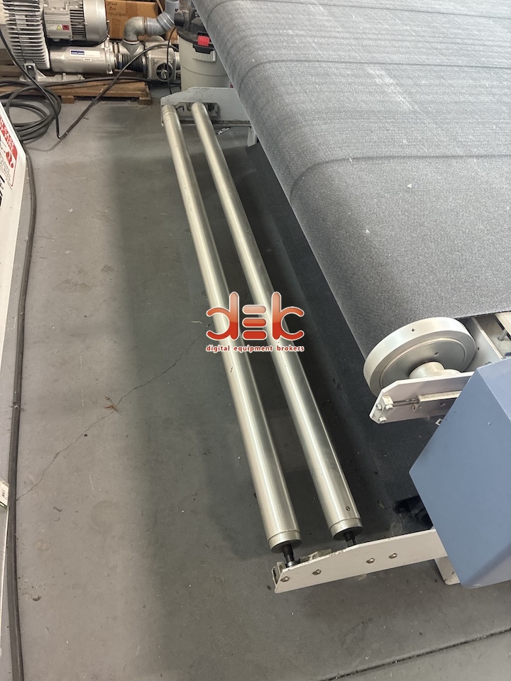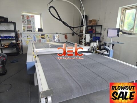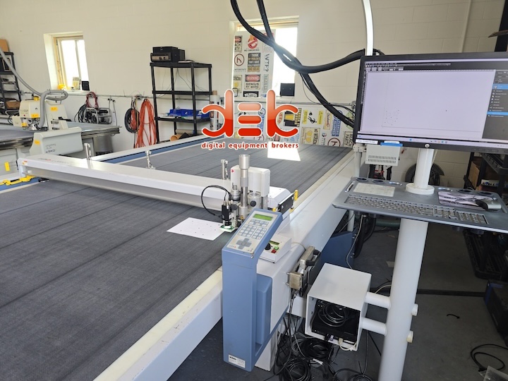 “Excellent working condition. Fully refurbished. Completely gone through & needs nothing. 6 month warranty. Always properly maintained and serviced. Roll off unit included. ROUTER. Drag knife tool included. Conveyor belt system. Vacuum pump motor system. Dust particle vacuum. New PC (Computer) Computer screen. Camera. Optiscout 8.” |